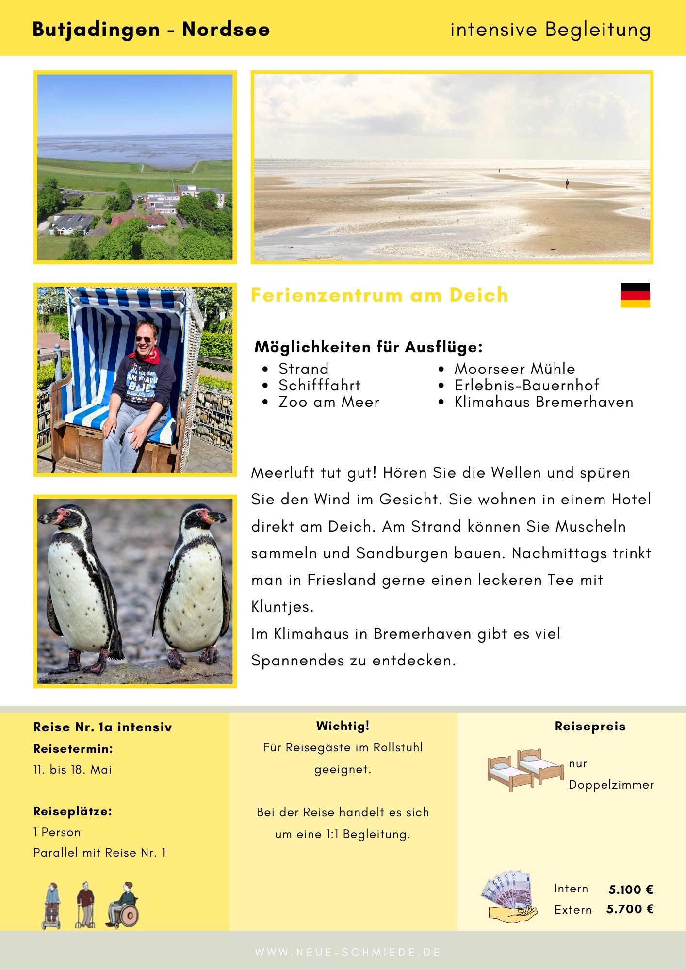 Da die Nachfrage für Intensiv-Reisen sehr gestiegen ist, haben wir sogar mehr Plätze zur Verfügung gestellt und eine neue, weitere Intensiv-Reise nach Butjadingen, Reise Nr. 1a, organisiert.